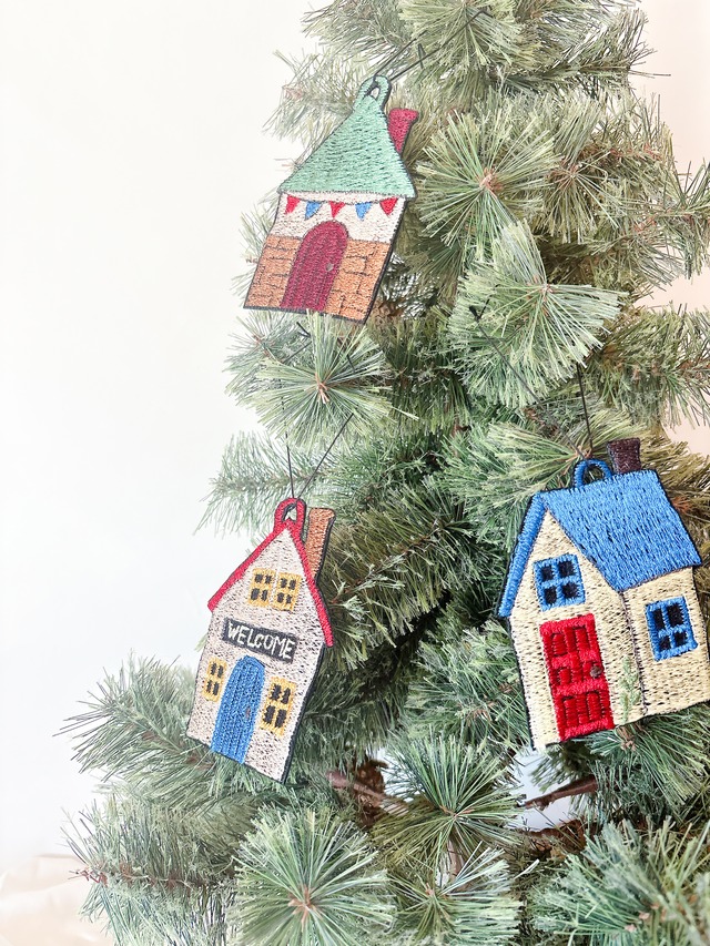 クリスマスツリーを小さな街並みのように彩ってくれる、刺繍のオーナメント。 糸の質感とあたたかみのあるデザインが、冬の空間をやさしく包み込みます。 お部屋のインテリアや、ちょっとした贈り物にもおすすめ。 ツリーに飾れば、まるで物語の中に入り込んだような特別な雰囲気を楽しめます。 ✨ポイント✨ ・繊細な刺繍ならではの立体感 ・クリスマスシーズンにぴったりのオリジナルデザイン ・ギフトにも喜ばれるあたたかな世界観 小さなお家たちが、クリスマスを心あたたかく彩ります✨ 3個セット サイズ:約11cm〜13cm ※刺繍ミシンを使用しフリーハンドで制作しておりますので、一点一点多少形が変わることがございます。 ※刺繍品の為、糸の引っ掛けにはご注意ください。 ※お手入れは、水で軽く濡らした布で優しく糸目に沿って拭いてください。 ※毛羽立ちが気になる時は、アイロンを中温であててください。 ※受注生産のため、ご注文をいただいてからの制作になります。仕上がりに7〜14日程お日にちをいただいておりますので、了承くださいませ。