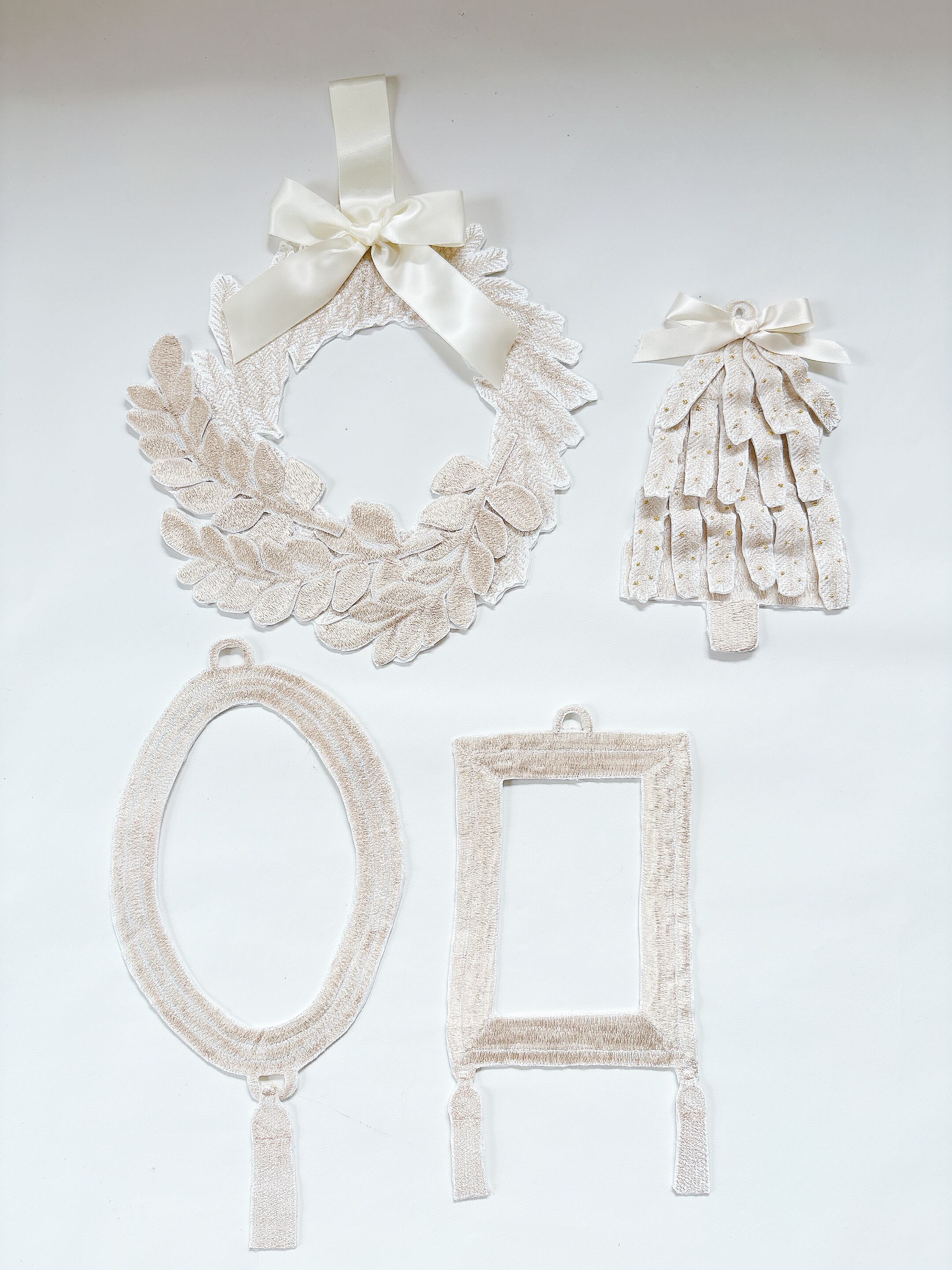 これまで人気をいただいているグリーンの刺繍リースに加え、新たに「白の世界」シリーズとしてホワイトリースが初登場しました⭐︎