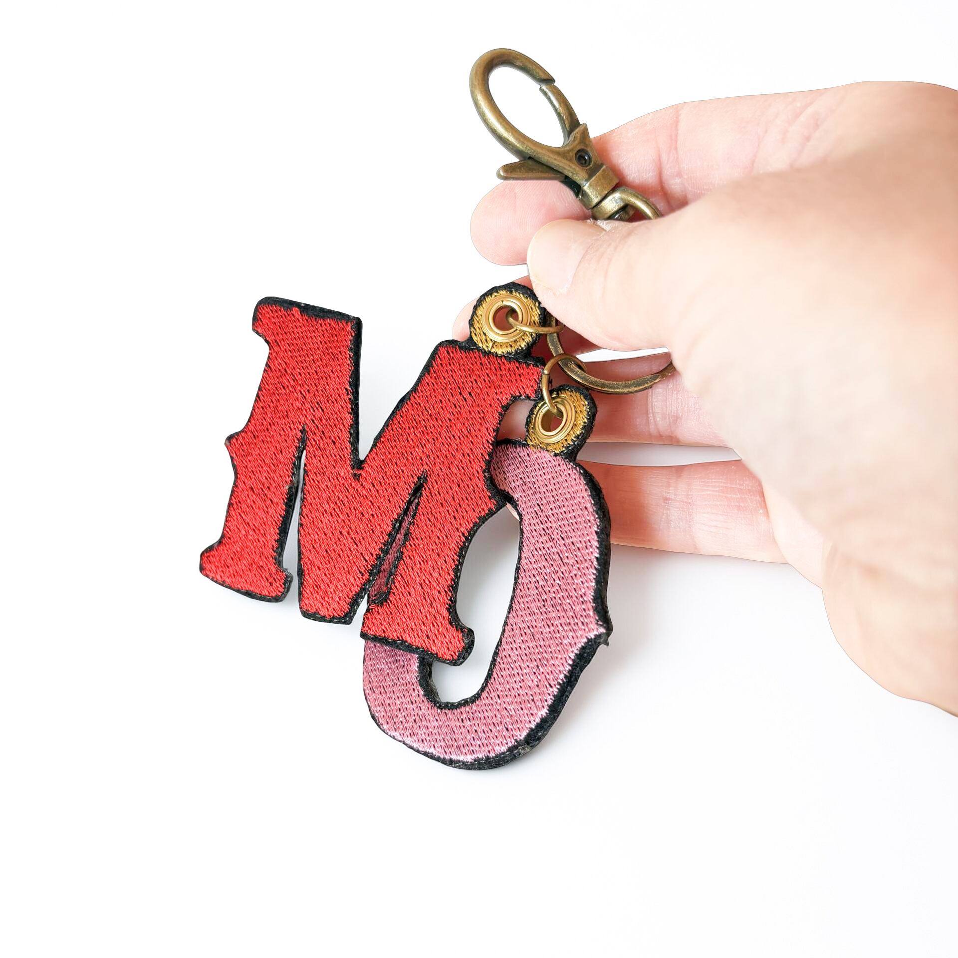 • 存在感はありますが、刺繍素材のため非常に軽量です。バッグの持ち手やファスナーへの負担を気にせずお使いいただけます。